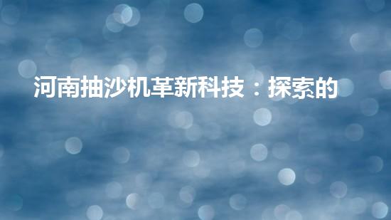 河南抽沙機革新科技:探索的未來?